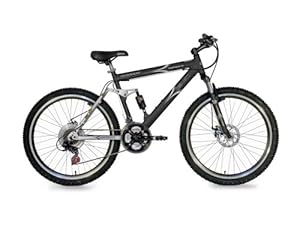 - 21-speed mountain bike features a full-suspension, strong aluminum frame
